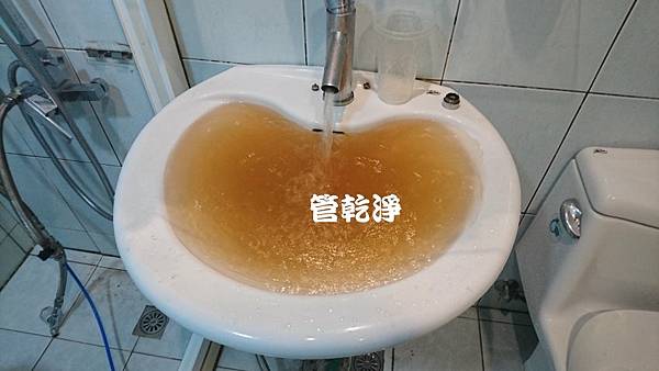 王先生 說家裡熱水出水會有顏色,出水量也偏小,本公司驅車至 王 公館,進行 洗水管 作業,檢測時發現管路都是鐵鏽,本公司架起 高周波水管清洗機,灌入 檸檬酸 至水管,等了約15分,開啟 水管清洗機 ,啟動 螺旋波 模式,一洗水管就流出黃色髒水,沒多久變成棕色髒水,髒水源源不絕,如下圖片,兩個多小時後,水管管路洗乾淨出水量也恢復正常了。